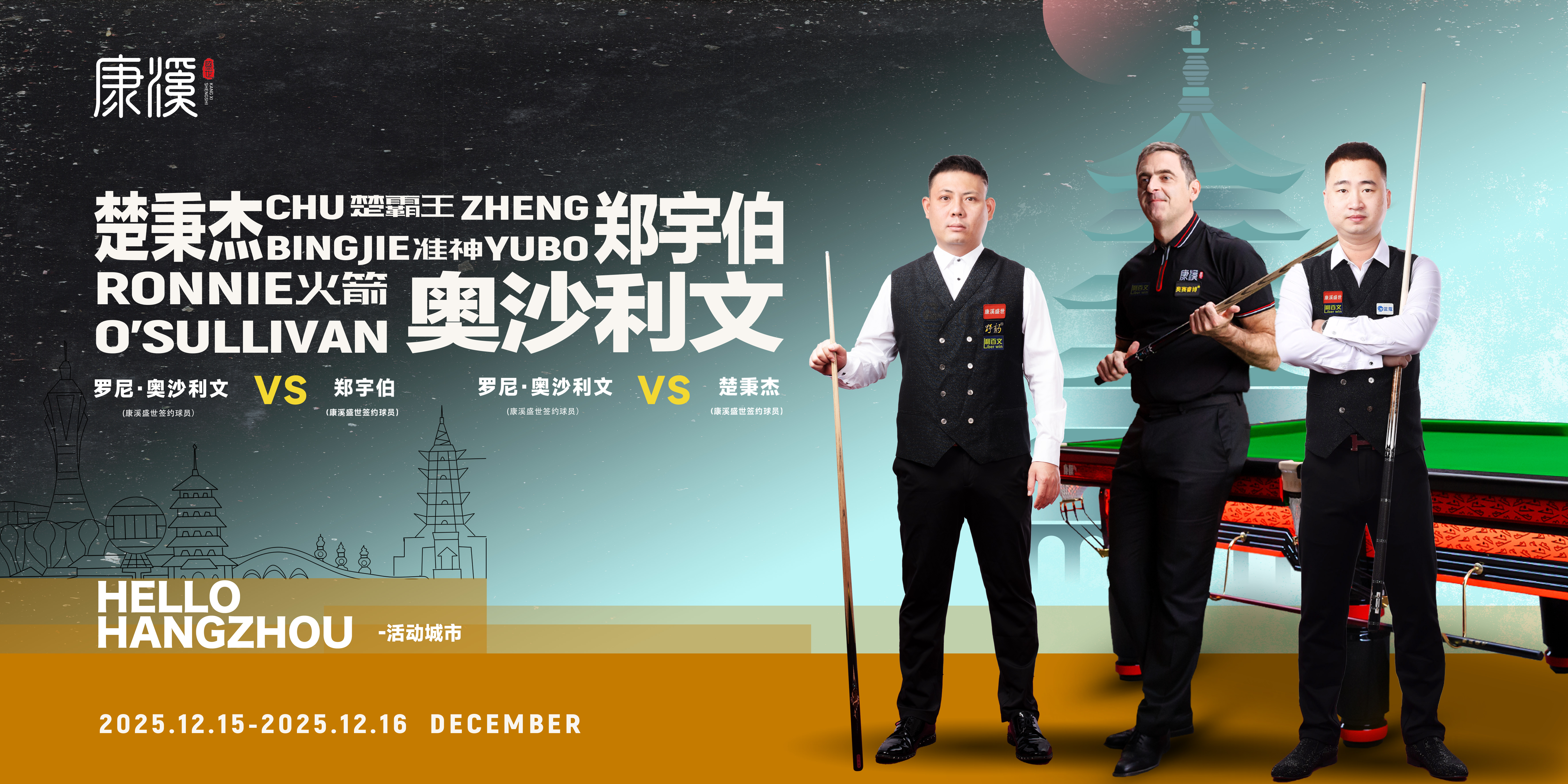 康溪盛世体育文化发展有限公司成立于 2018 年 2 月,本公司致力于打造中式台球经典赛事、推动台球运动发展,通过赛事运营带动商品销售的新型体育赛事公司。 现公司业务涵盖:赛事运营、球员经纪、赛事主播、台球用品研发与销售、连锁俱乐部等多个方面。 公司自成了以来先后打造了“中式台球郑宇伯挑战赛”、“中式台球超级对抗赛”、“中式台球北方排名赛”、“中式台球黄金联赛”、“单挑”、“中式台球精英巡回赛”、“王牌对王牌”等大型中式台球赛事,实现了由 联合办赛到自己打造独家赛事 IP 的华丽转身。 公司现签约 禹龙海、郑宇伯、何文冲、宛仝乐、楚秉杰、李赫文、李博、唐春晓、白鸽、雷镒玮、郑凯、石汉青、崔明君、王也、金鹏、宫海峰、申重阳、朝鲁门、赵云彪、于海涛、于庭、尼尔罗伯逊、范争一、孙鹏等世界和国内冠军级球员