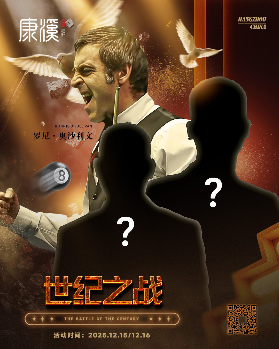 两道黑影背后,会是谁?康溪盛世在杭州赛场布下这场未知盛宴!杆法与战术的极致博弈,热血与优雅的无缝交织,更是与传奇同场呼吸的珍贵时刻。